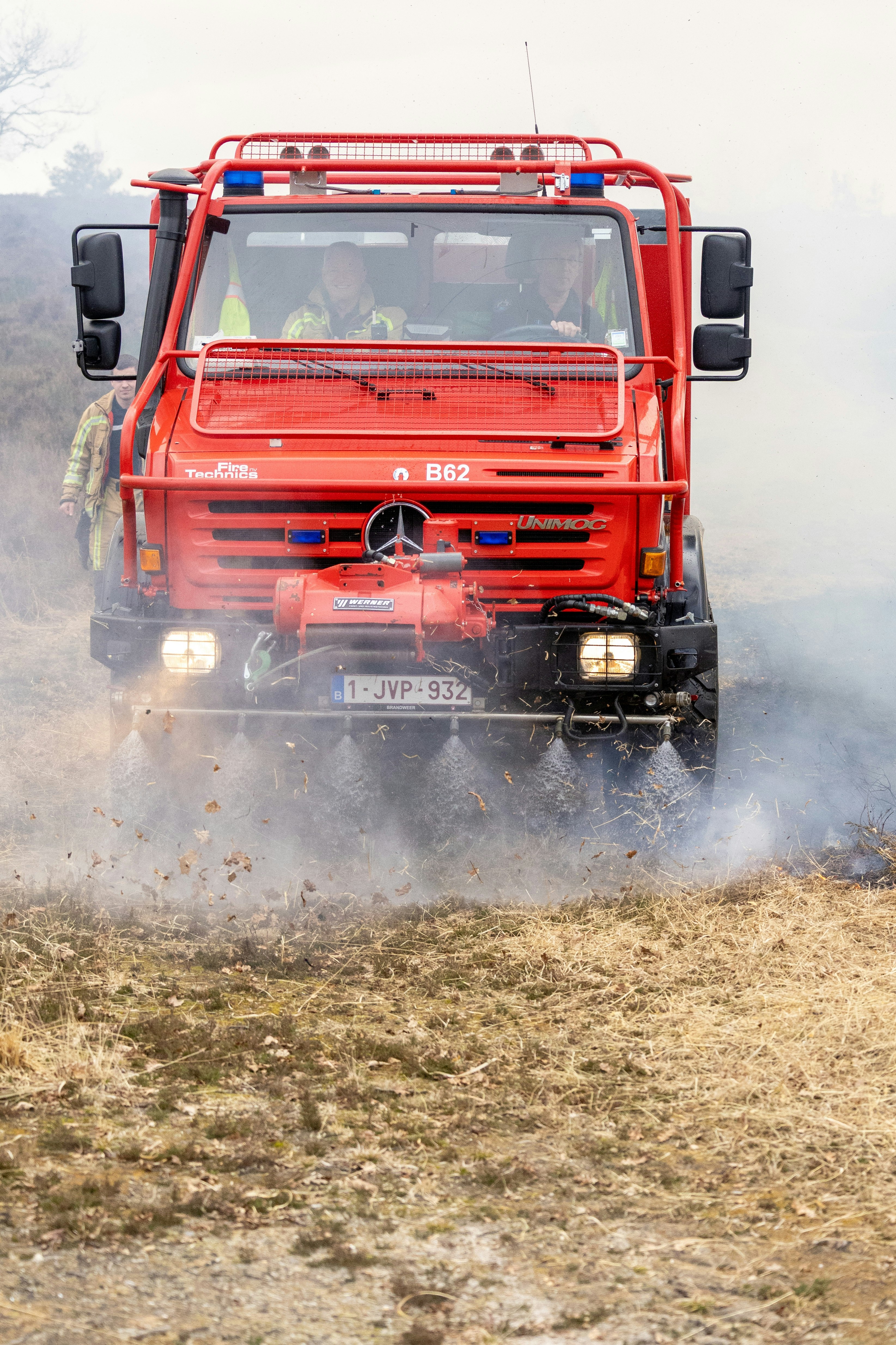Fire brigade extinguishes fire lane